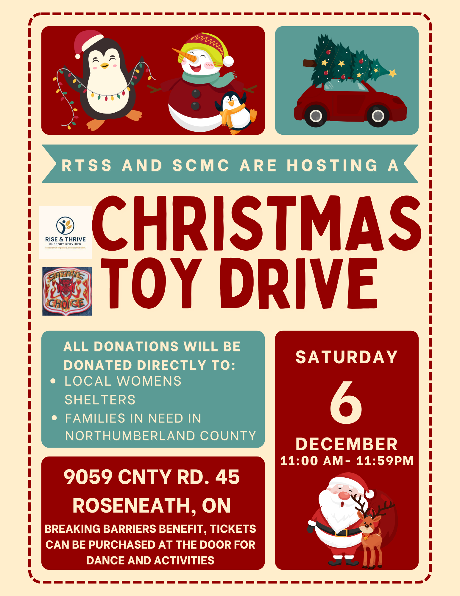 Rise and Thrive Support Services (RTSS), in partnership with SCMC, is proud to host a Christmas Toy Drive as part of our upcoming Benefit Fundraiser. This heartfelt initiative invites guests and community members to bring a toy donation to help make the holiday season brighter for children and families in our community.